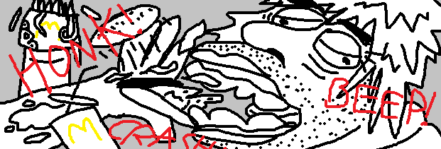 *drives away angrily*