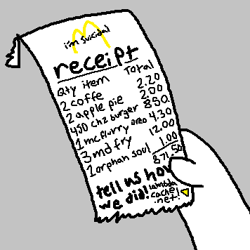 now you have your food and you can go on your merry way and leave the depressed underpaid overworked teenagers alone!